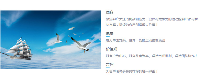 “成就客戶”明確了所有雷賽人的偉大責任。幫助國內(nèi)外自動化設備行業(yè)的廣大客戶,發(fā)掘和滿足他們的運動控制需求,實現(xiàn)他們的設備目標和企業(yè)夢想。偉通機電人堅持以客戶為中心,快速響應客戶需求,為客戶提供優(yōu)質(zhì)、及時、相對低成本的產(chǎn)品和服務,持續(xù)為客戶創(chuàng)造長期價值進而成就客戶。成就客戶是成就偉通、成就偉通人才的唯一途徑。